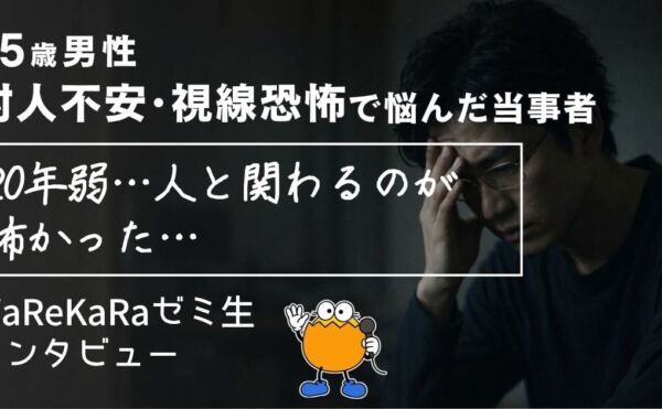 動画でご覧になりたい方はこちら。約15分の動画です。 この記事でわかること 今回は、視線恐怖症・対人不安の悩みを抱えてWaReKaRaゼミに参加し、プログラムを終えたTさんにインタビューをさせていただいた内容をもとに記事 […]